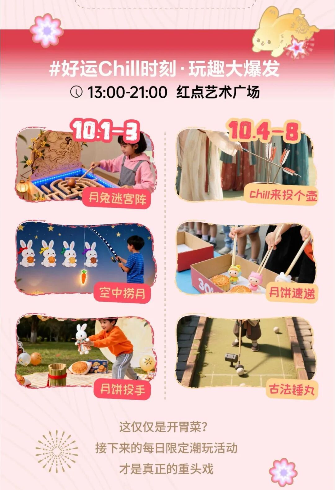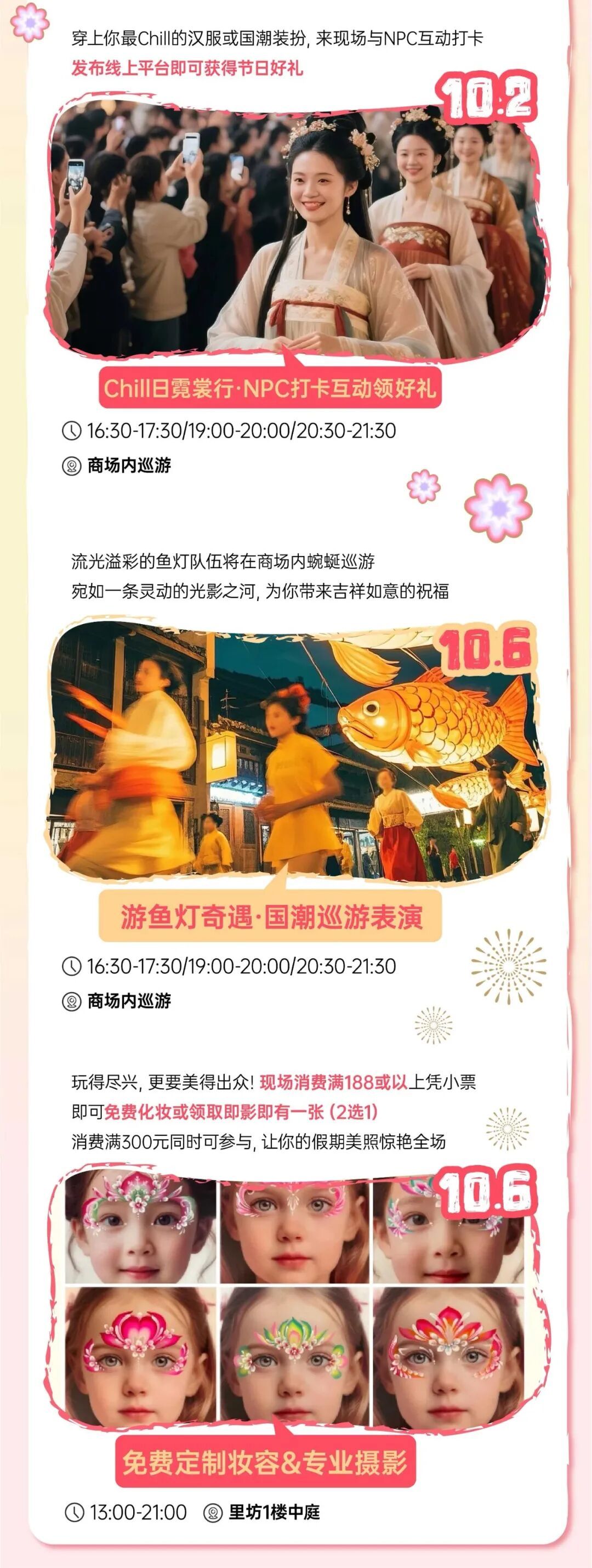 内容:结合双节主题打造巨型灯笼,联动场内商户开展游园会互动。