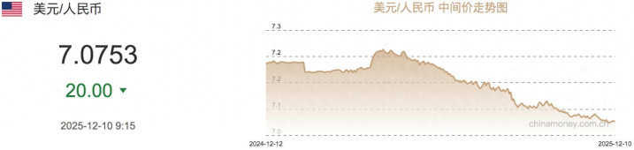 12月10日,美元兑离岸人民币,最新报:7.0639,开盘:7.0595,最低:7.0579,最高:7.0659。