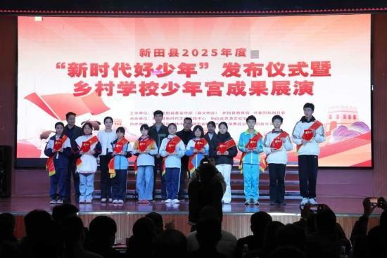 现场。受访单位供图日前,湖南新田县2025年度“新时代好少年”发布仪式暨乡村学校少年宫成果展演在该县思源实验学校举行。